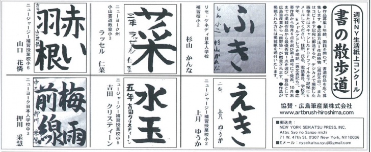 August 20, 2017 Shodo Contest in August at Shukan NY Seikatsu The excellent "shodo" (calligraphy) work announcement in August at the "shodo" contest in "Shukan NY Seikatsu" (Newspaper in NYC) which we sponsored.