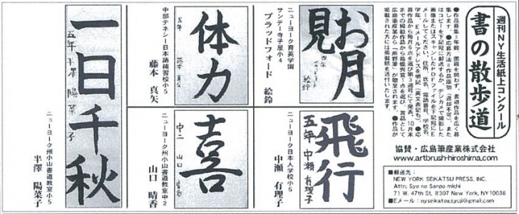 October 21, 2017 Shodo Contest in October at Shukan NY Seikatsu The excellent "shodo" (calligraphy) work announcement in October at the "shodo" contest in "Shukan NY Seikatsu" (Newspaper in NYC) which we sponsored.