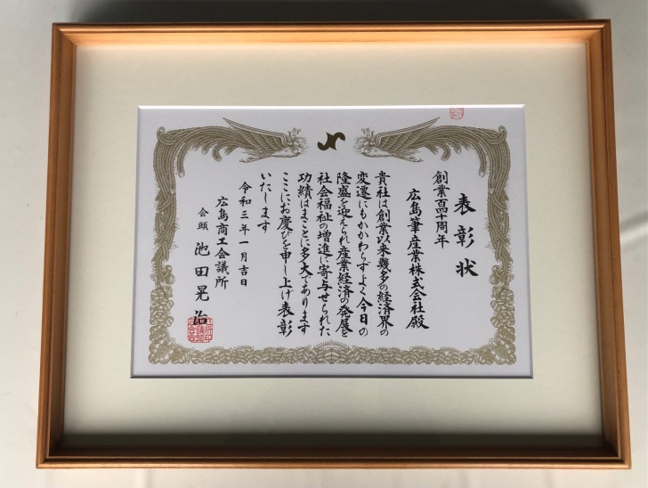 Mr. Shodai Joichi Shiromoto received the license from Hiroshima Prefecture as "Fude Yui (making and selling brushes)" first in Kumano Town in January 1881 (Meiji 14), and we, as a company named “Shiromoto Shouten,” started brush manufacturing and selling, officially. Therefore, January 1881 is the official foundation year of our company, and this year is 140th anniversary!
