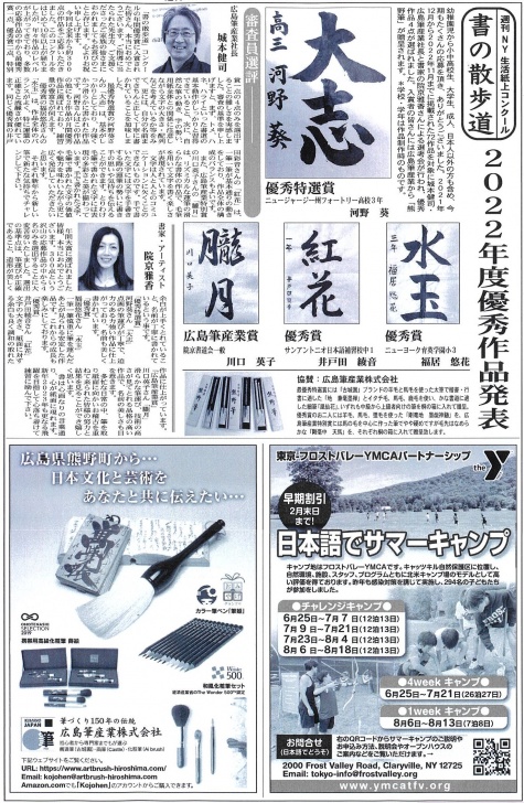 We selected the Best Shodo Performance Awards for the Year of 2022 at Shukan New York Seikatsu where we have sponsored the shodo contest.