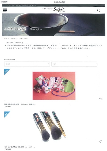 American Express started to sell our makeup brushes ( "Portable High Quality Makeup Brush Set with Makie" and "Kumano Makeup Brush Set with Kimono") at "Delight", American Express's sites for card members!